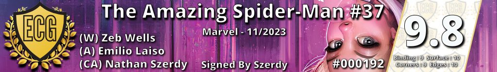 Lors d’une gradation d’un comics signé, une étiquette spéciale vous est offerte comprenant la mention « S » avec l’auteur de la signature ainsi que la date.